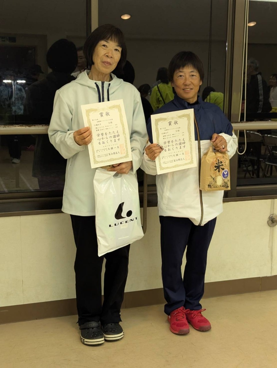 第78回全関西ソフトテニス大会(令和7年11月2日) 55歳女子の部 第3位 長郷・境山ペア 55歳女子の部の参加人数が一番多く、決勝戦はナイターでした。 3月のダンロップカップで負けた相手に勝っての3位入賞で嬉しいです。 お米ゲットも最高!!